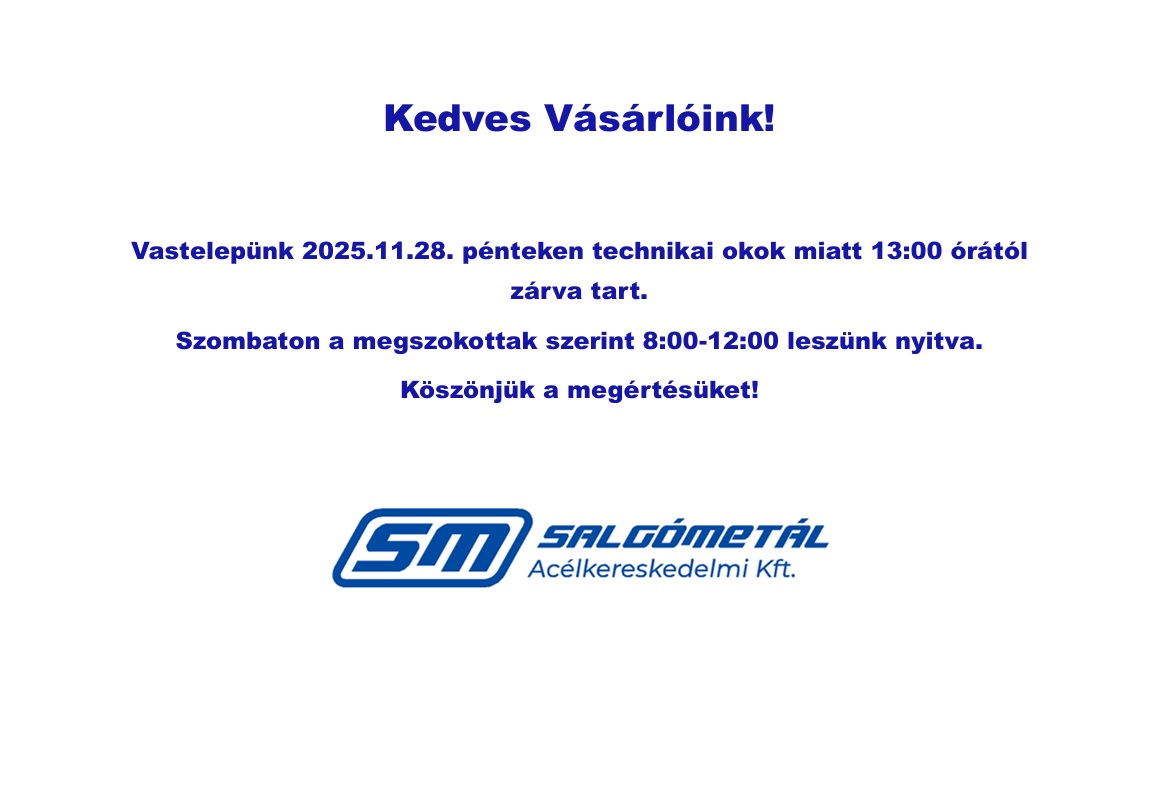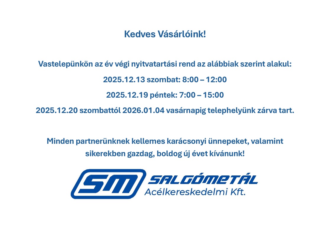 Teljes cégnév: Salgómetál Acélkereskedelmi Kft.